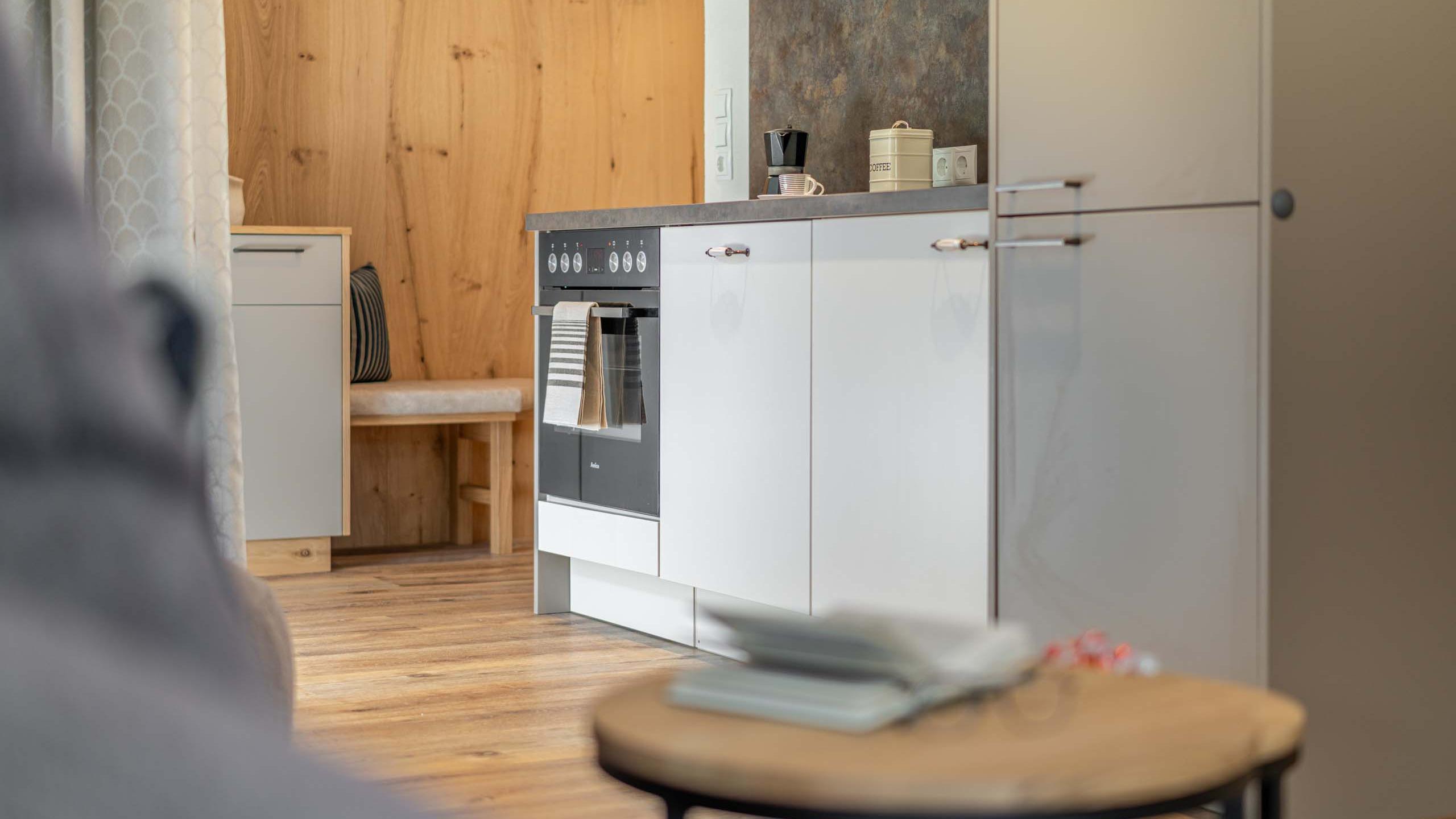- Voll ausgestattete Küche mit Cerankochfeld, Backrohr, Kühlschrank, Spülmaschine, Wasserkocher, Kaffeemaschine, Toaster u. v. m.